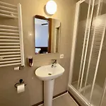 Las comodidades del baño incluyen secador de pelo y toallas de baño, además de elementos esenciales como un inodoro separado y una ducha.
